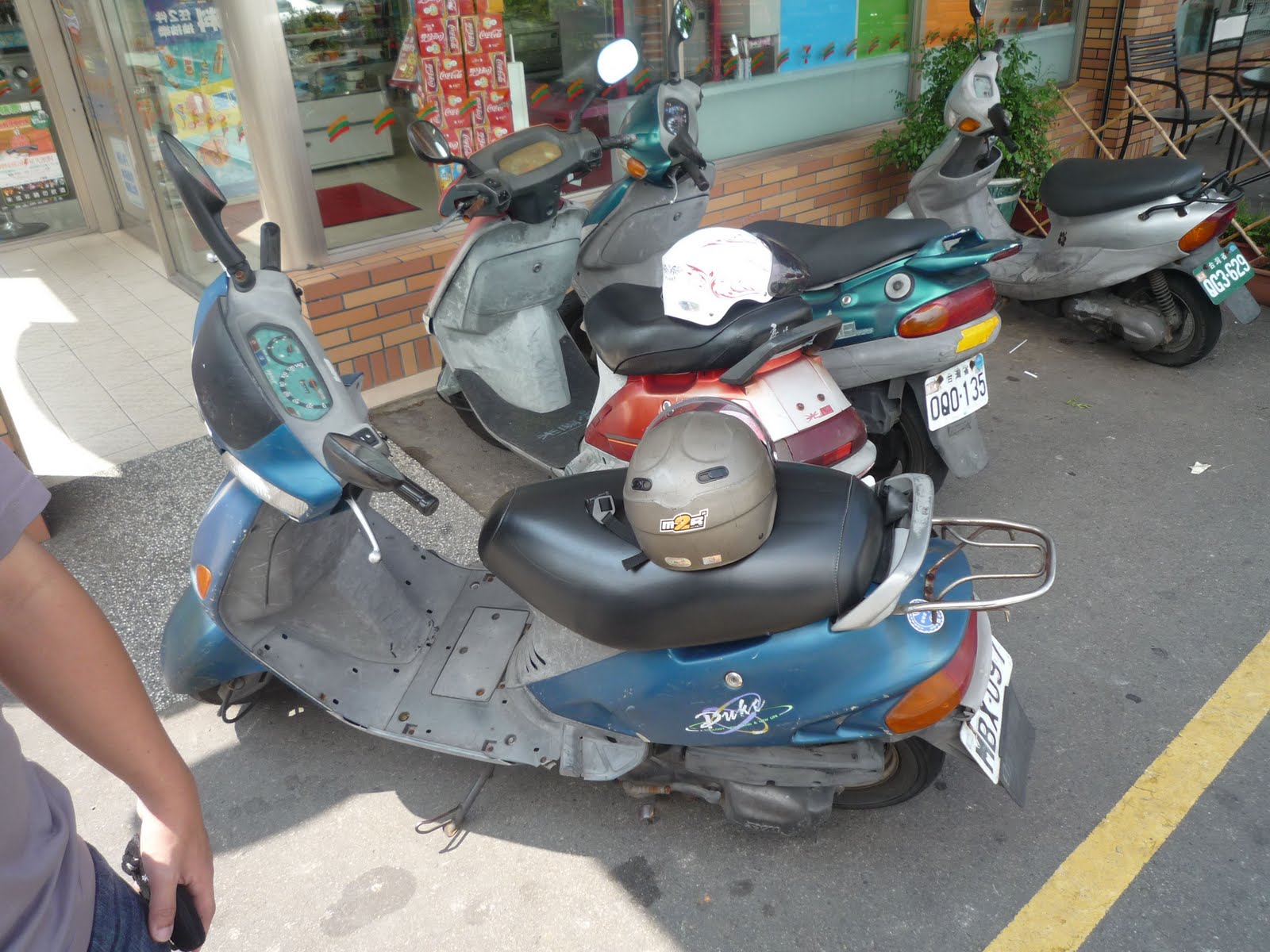 And finally, I got to ride on a scooter today! Not by choice, really. I had to get to the bank to change a little US$ to NT, in case I found something to buy on our trips this weekend, and that was the only way to get there and back in time.